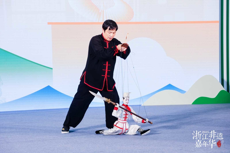 “之江启幕”主舞台区的开幕式上,浦江古琴的悠远之音与宋代点茶的静雅之美拉开活动序幕,苍南提线木偶戏《欢庆盛世》上演变脸喷火等绝技,赢得阵阵欢呼和掌声。随后,浙江省文化广电和旅游厅党组成员、副厅长吕伟强鸣锣开市,欢腾的新昌舞狮队伍点燃全场,开启为期三天的非遗体验之旅。